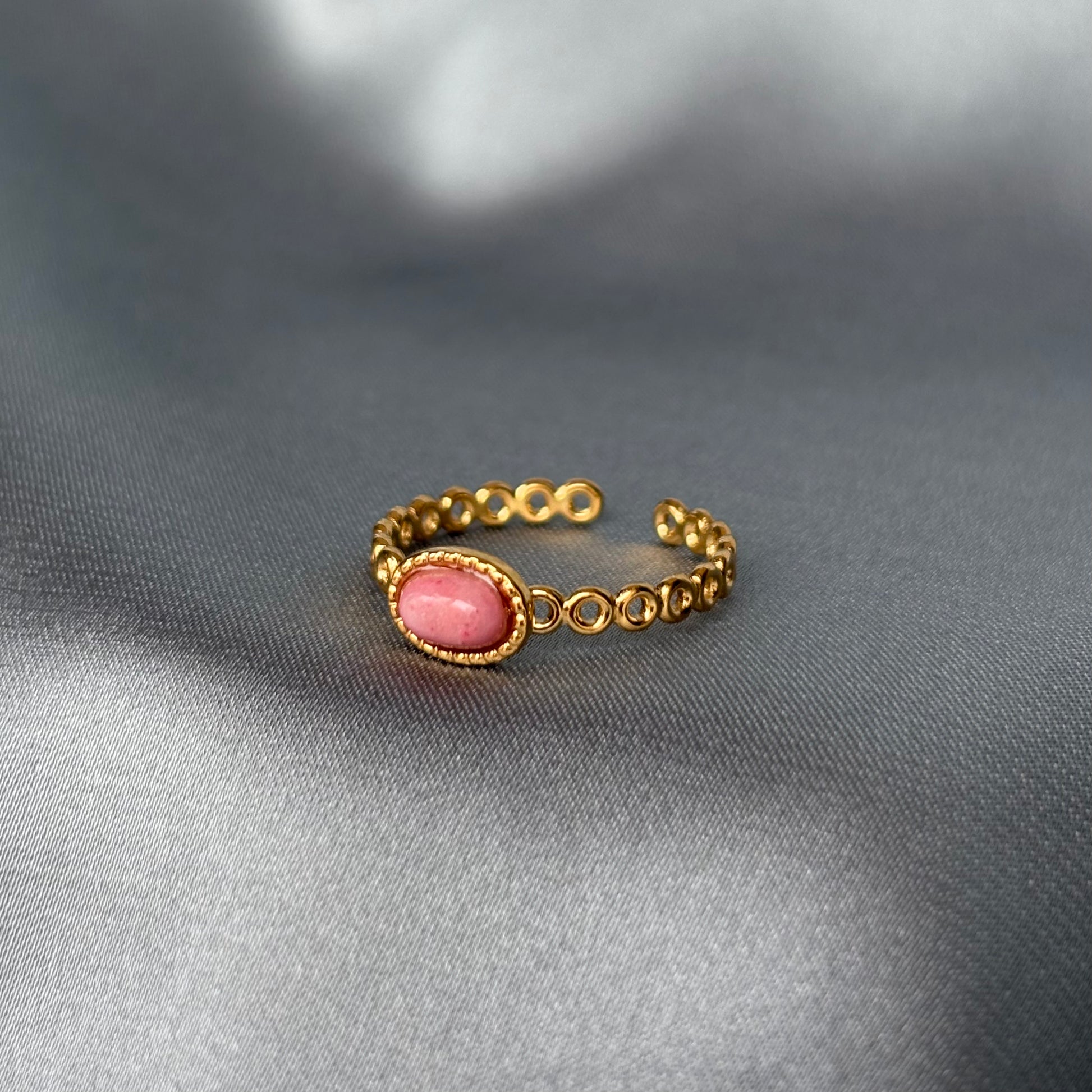 La bague Rose en acier inoxydable est ornée d'une pierre rose, ajoutant une touche de féminité et de délicatesse à votre look. Sa résistance et sa durabilité font d'elle un accessoire idéal pour toutes les occasions.