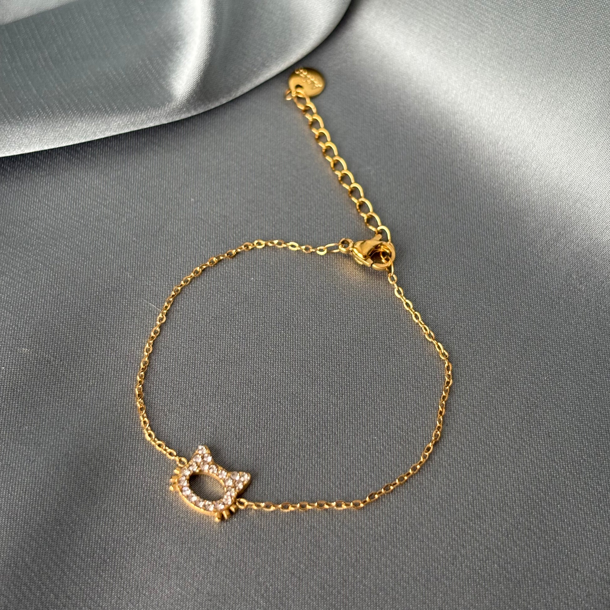 Ce bracelet en or avec un chat à strass est le cadeau parfait pour votre enfant ! Fabriqué en acier inoxydable, il est à la fois élégant et durable. Ajoutez une touche de glamour à son look avec ce bracelet unique et irrésistible !