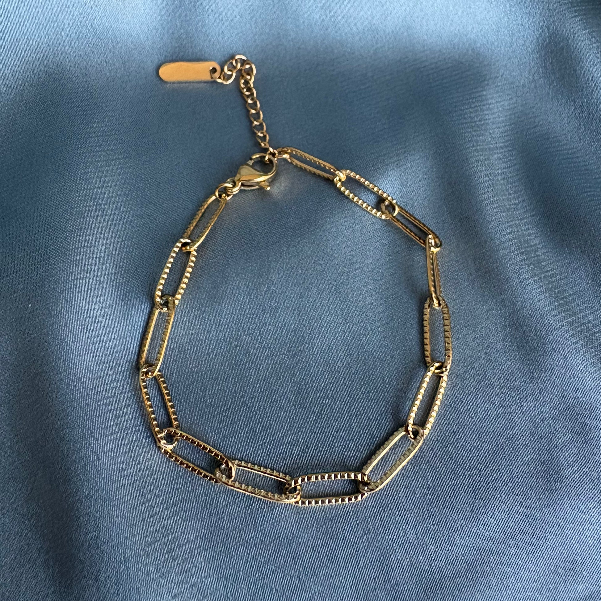 Ce bijou fait 16,5 cm, avec 3,5 cm de chaînette ajustable.